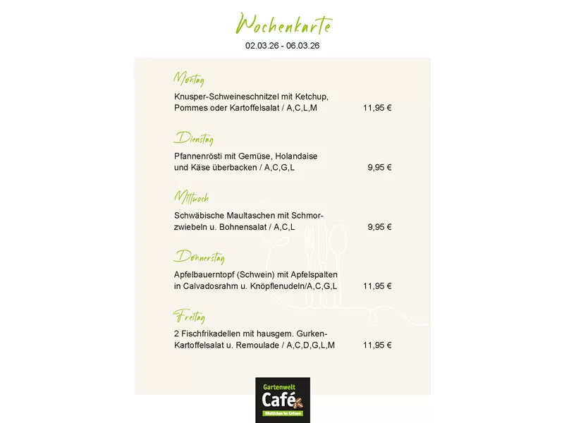 ... Mittagstisch-Karte Café Stein KW10 - 02.03.26 - 06.03.26 herunterladen