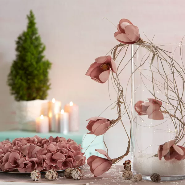 Auch wenn es draußen sehr trist und farblos ist, muss das nicht heißen, dass Ihre Wohnung nicht aufblühen darf. Weil Hortensie und Co. aber im Winter nicht blühen, müssen Sie auf die tollen Blüten trotzdem nicht verzichten. Mit künstlichen Blüten können Sie mindestens genauso gut dekorieren und ein Hortensienkranz wirkt an einer Tür oder im Fenster besonders schön. Eine künstliche Blütenranke lässt sich ein einem hohen Glas mit Streuschnee und einer Lichterkette toll in Szene setzen und kleine Wichtel passen perfekt zu Ihrer floralen Winterdekoration. Die passen übrigens auch mit der Blütenranke und der Lichterkette in das Dekoglas.