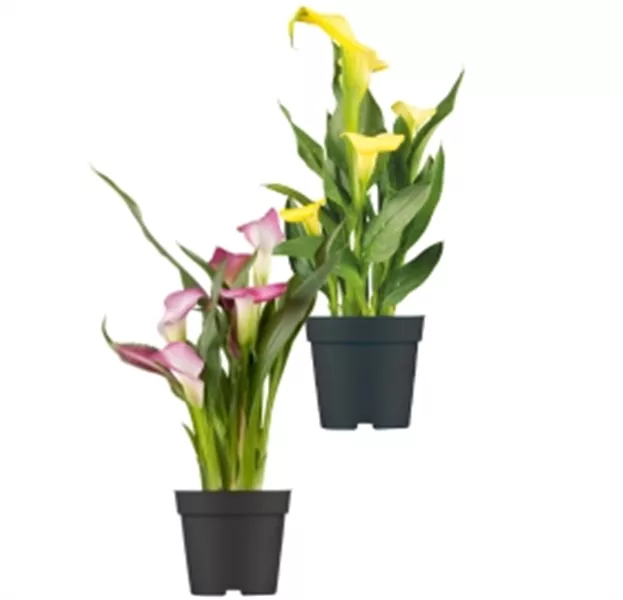 Wenn Sie die Calla (Zantedeschia) sprechen lassen, teilen Sie Ihrem Liebsten ein Kompliment mit: „Du bist wunderschön“, vermittelt die elegante Pflanze. Die Schönheit mit den bunten Kelchen stammt aus Afrika und wird dem Beschenkten gleich etwas Sonne ins Heim zaubern.