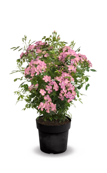 Ein Insekten- und Schmetterlingsliebling ist die malerische Strauchrose 'Rosy Boom® Mini' (Rosa-Hybride),