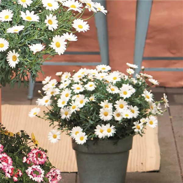 Das MARGERITEN-STäMMCHEN (Argyranthemum frutescens) wirkt mit seinen klaren weißen Blüten zunächst zurückhaltend, bringt jedoch eine erstaunliche Robustheit mit. Ursprünglich von den Kanarischen Inseln stammend, ist die Pflanze an lichtreiche, warme und oft windige Standorte angepasst. Genau das macht sie zu einem verlässlichen Sommerbegleiter, auch an exponierten Plätzen auf Terrasse oder Balkon. Damit die Blütenpracht der Margerite lange anhält, braucht sie vor allem Regelmäßigkeit: gleichmäßig gießen, Staunässe vermeiden und verblühte Blüten konsequent entfernen.