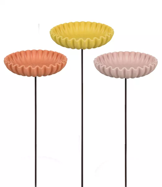 VOGELTräNKEN setzen spielerische Akzente zwischen Pflanzen und Blüten. Ihre organische Form und die sanften Farben wirken wie kleine Designobjekte und fügen sich leicht in sommerliche Arrangements ein. Gleichzeitig bieten sie Vögeln an warmen Ta-gen eine willkommene Trink- und Badegelegenheit.