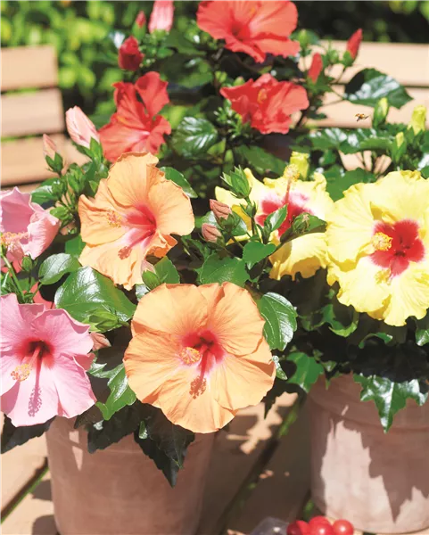 Sobald die SCHMUCKLILIE (Agapanthus), der OLEANDER-BUSCH (Nerium oleander) und der HIBISKUS-BUSCH (Hibiscus rosasinensis) ihre Blüten öffnen, zieht ein Hauch von Süden auf der Terrasse ein. „Agapanthus“ bedeutet Liebesblume, Oleander hält Hitze gut stand, und die großen Hibiskusblüten öffnen sich oft nur für einen Tag. Auch sie brauchen viel Licht und lockere Erde, der Hibiskus reagiert sensibler auf Trockenheit. Da diese mediterranen Kübelpflanzen insgesamt kälteempfindlich sind, überwintern sie am besten hell und frostfrei oder mit verlässlichem Schutz. So bleiben sie über viele Sommer hinweg charakterstarke Begleiter.