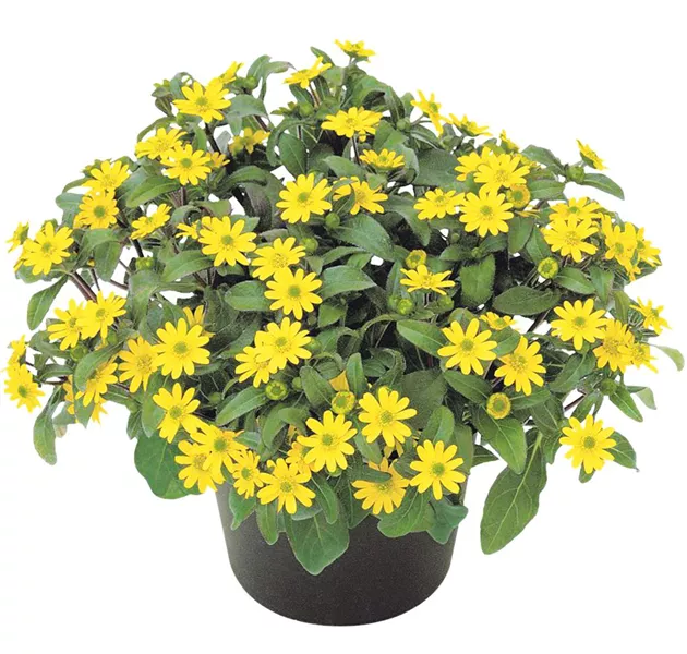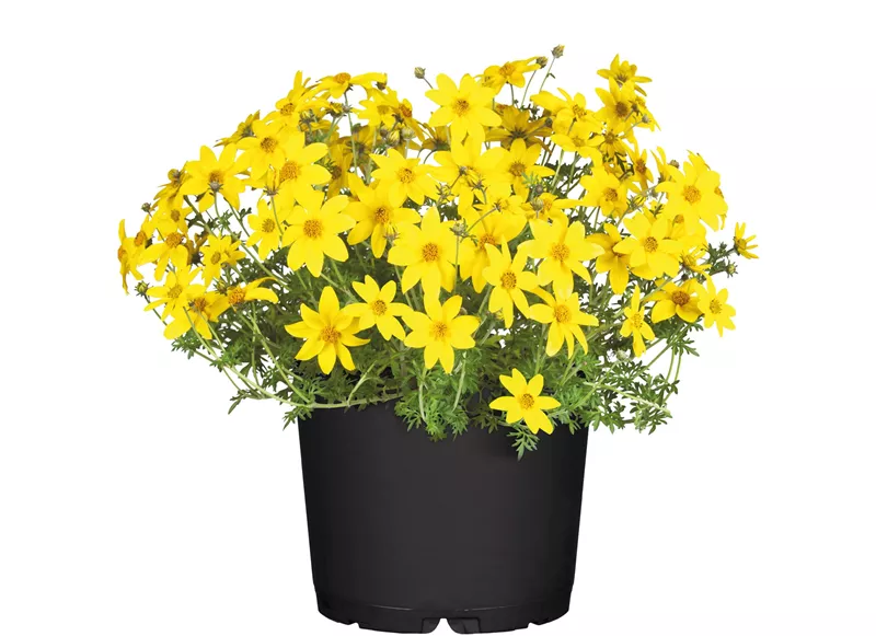 Der ZWEIZAHN (Bidens ferulifolia) wirkt, als hätte er das Sonnenlicht gepachtet. Unermüdlich schiebt er neue, goldgelbe Blüten nach, während seine feinen Blätter eine leichte, bewegte Struktur bilden. Seine Heimat liegt in den warmen Regionen Mexikos und des südlichen Nordamerikas. Hitze macht ihm deshalb wenig aus, im Gegenteil: Je heller und wärmer der Standort, desto vitaler zeigt er sich. Wichtig ist ein gut durchlässiges Substrat, damit sich im Wurzelbereich keine anhaltende Feuchtigkeit sammelt. Seine offenen Blüten sind leicht zugänglich und werden gern von Bienen und kleinen Bestäubern angeflogen.