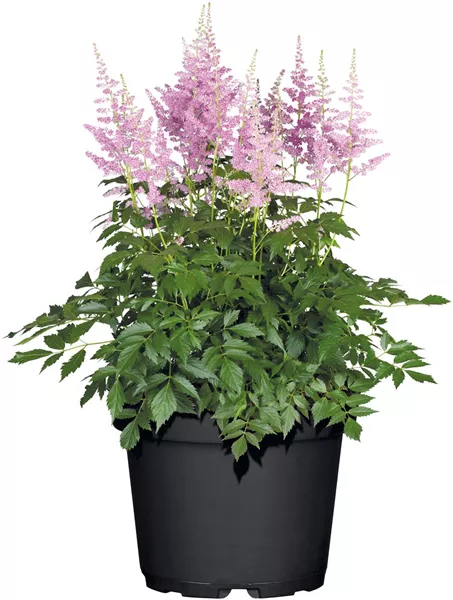 Wie ein heller Schleier wirkt die PRACHTSPIERE (Astilbe japonica) in halbschattigen Bereichen des Gartens. Ihre fedrigen Blütenrispen in Weiß, Rosé oder Karmin steigen über dem fein gefiederten Laub auf und bringen Farbe und Schwung in Bereiche, die sonst oft grün dominiert bleiben. Ihre Heimat liegt in feuchten Waldregionen Ostasiens, ein Hinweis auf ihre Vorlieben. Sie entwickelt sich optimal in humosem, frischem Boden, der nicht austrocknet. Ein Platz im lichten Schatten bekommt ihr besonders gut, sowohl im Beet als auch im Kübel. Dort bleibt sie über viele Jahre vital und wird zudem gern von Insekten besucht.