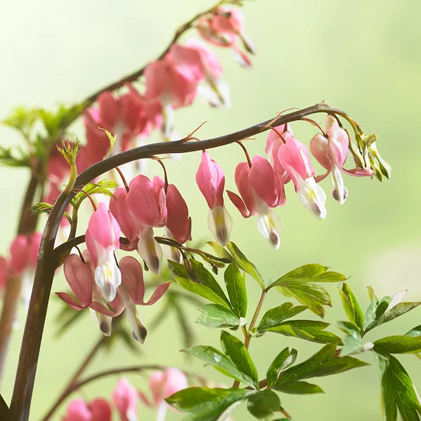 Vor allem im Schatten kommen Pflanzen mit hellen Blüten besonders zur Geltung. Finden sich bereits Narzissen (Narcissus) in Ihrem Garten, können Sie die weiße oder gelbe Blütenfarbe durch weitere Pflanzen aufgreifen oder ergänzen. Ein Tränendes Herz (Dicentra spectabilis) in Weiß oder Rosa und ein großblättriges Kaukasus-Vergissmeinnicht (Brunnera macrophylla) in Weiß oder Blau sehen sehr gut dazu aus. Sie bevorzugen einen gleichmäßig feuchten und humusreichen Boden. Das Kaukasus-Vergissmeinnicht fällt vor allem wegen seiner wunderschönen herzförmigen, teils panaschierten Blätter auf, die auch zur Abwehr gegen Schnecken dienen. Seine Blüten zeigt es ab April. Ebenfalls anspruchslos in der Standortwahl zeigt sich das Tränende Herz. Lediglich auf direkte Sonne und Austrocknen reagiert es empfindlich. Ab Mai blüht es je nach Sorte in Rosa oder Weiß. Der Steinbrech (Saxifraga ardendsii) kann ergänzend im Halbschatten als Bodendecker eingesetzt werden. Je nach Sorte blüht er ab Mai in Weiß, Hellgelb, Orange, Rot, Pink sowie Violett.