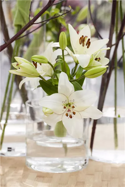 Die geschwungenen Blütenstängel und die zarten Blüten in Weiß, Gelb, Orange oder Rot sehen als Solisten in hohen, engen Vasen am schönsten aus. Bereits die ungeöffneten, flaumigen Knospen sind eine Zierde. Der Mohn hat trotz aller züchterischen Anstrengungen seine Natürlichkeit bewahrt und wurde so zum begehrten Objekt der Blumenkünstler.