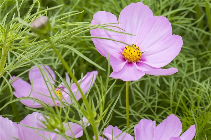 Die Dauerblüher im Sommerbeet bestechen auch in der Vase. Weiß, rosa oder karminrote Blüten mit gelber Mitte sind immer ein Blickfang. Ihr feines, filigranes Laub verleiht der Blume eine sehr zarte, filigrane Wirkung. Trotzdem ist sie robust und hält sich in der Vase sehr lange.