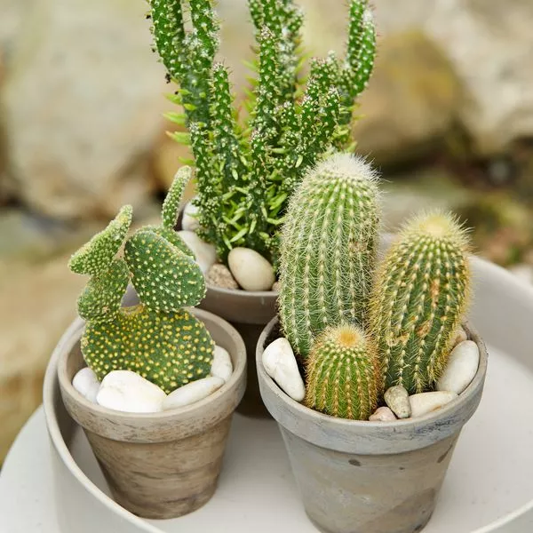 Ideal für Bürofenster in eher für Pflanzen problematischer südlicher Ausrichtung sind Kakteen und Sukkulenten. Sie benötigen wenig Pflege und müssen nur selten gegossen werden. Sukkulenten speichern in ihren fleischigen Blättern das Wasser für rare Zeiten. Kakteen und Sukkulenten fühlen sich bei Zimmertemperatur am wohlsten. Kakteen z.B. gibt es in rund, säulenförmig oder kugelig – im großen Sortiment findet bestimmt jeder seinen Lieblingskaktus fürs Büro.