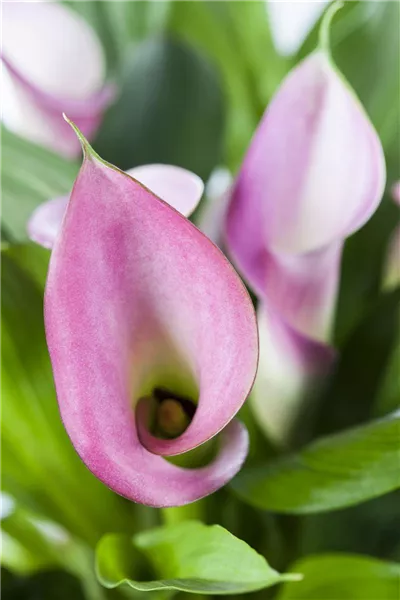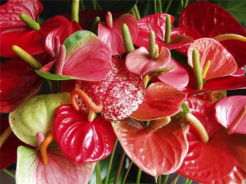 Die in den Tropen beheimatete Flamingoblume gilt als äußerst dankbare Schnittblume. Leuchtende Blätter umschließen den Blütenkolben, der sich aus unscheinbaren Einzelblüten in Gestalt kleiner Höcker zusammensetzt. Gerade in den letzten Jahren haben die Züchter viele neue Sorten auf den Markt gebracht – vor allem die kleinblütigen Sorten lassen sich in gemischten Sträußen wunderbar verwenden. Die Blätter finden außerdem in der Floristik Verwendung.
