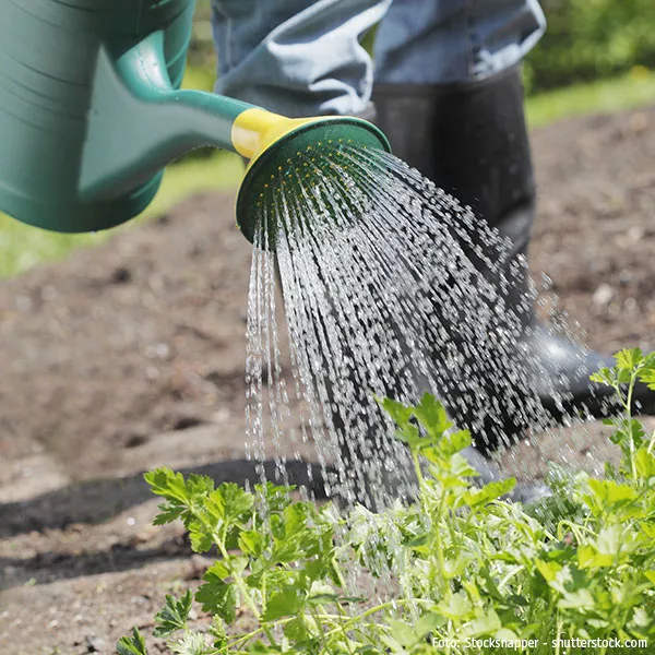 Verwenden Sie für Gießkanne und Gartenschlauch einen Brauseaufsatz, um das Wasser fein zu zerteilen. Ein zu harter Wasserstrahl könnte die Erde abschwemmen.