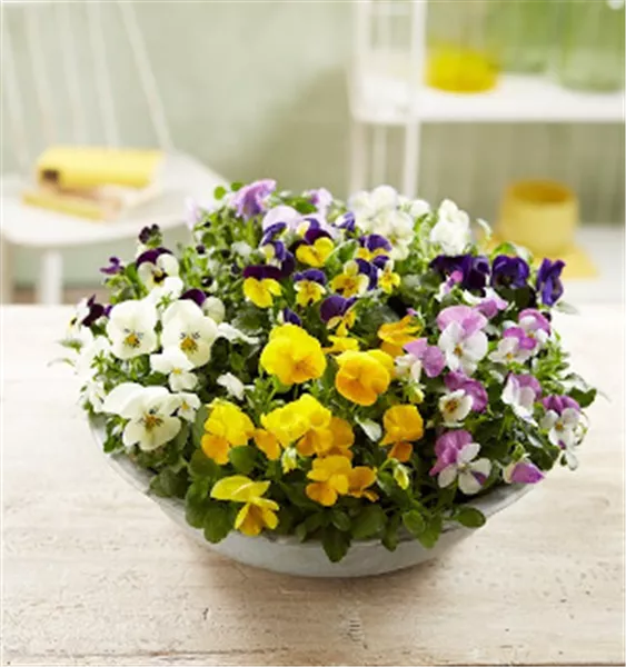 Pflanzen Sie viele verschieden farbige Hornveilchen in eine Schale – das bringt den Frühling auf den Tisch. Hornveilchen sind im Beet die perfekten Lückenfüller.