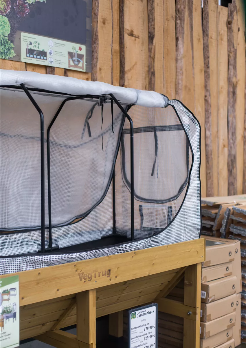 Der VegTrug mit seiner einzigartigen „V-Form“ bietet tief und flach wurzelndem Gemüse ausreichend Platz auf kleinstem Raum. Dazu bieten die schmale Unterseite und die breite, offene Oberseite eine großzügige Pflanzfläche, die leicht zugänglich ist. Auch vor Schädlingen sind die Pflanzen im VegTrug-Hochbeet bestmöglich geschützt. Als Zubehör schützt eine passenden Haube mit vielen Funktionalitäten die Beetbepflanzung vor Kälte, Nässe und auch vor zu starker Sonneneinstrahlung.